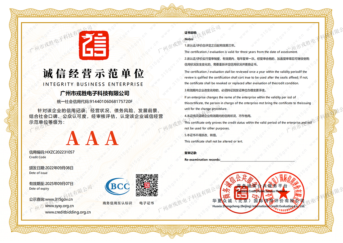 Our company obtained the certificate of good faith experience demonstration unit on September 07, 2022.