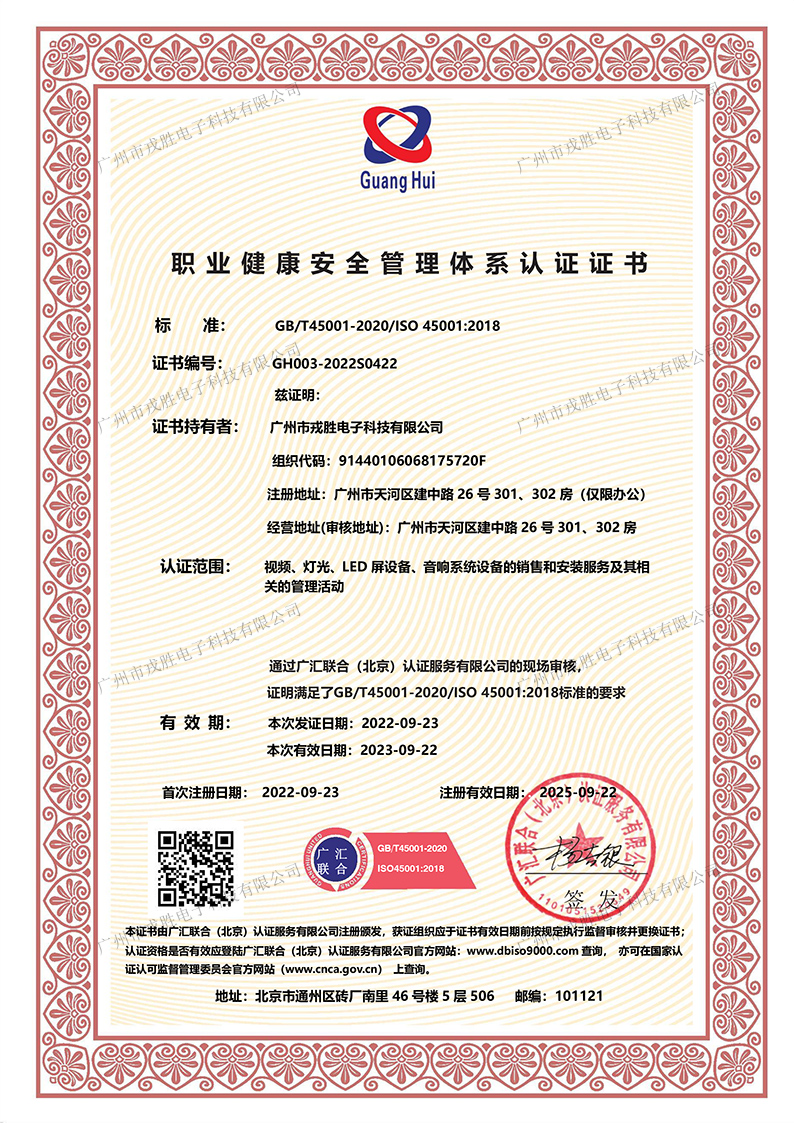 我司于2022年9月23日获得ISO职业健康安全管理体系认证证书。